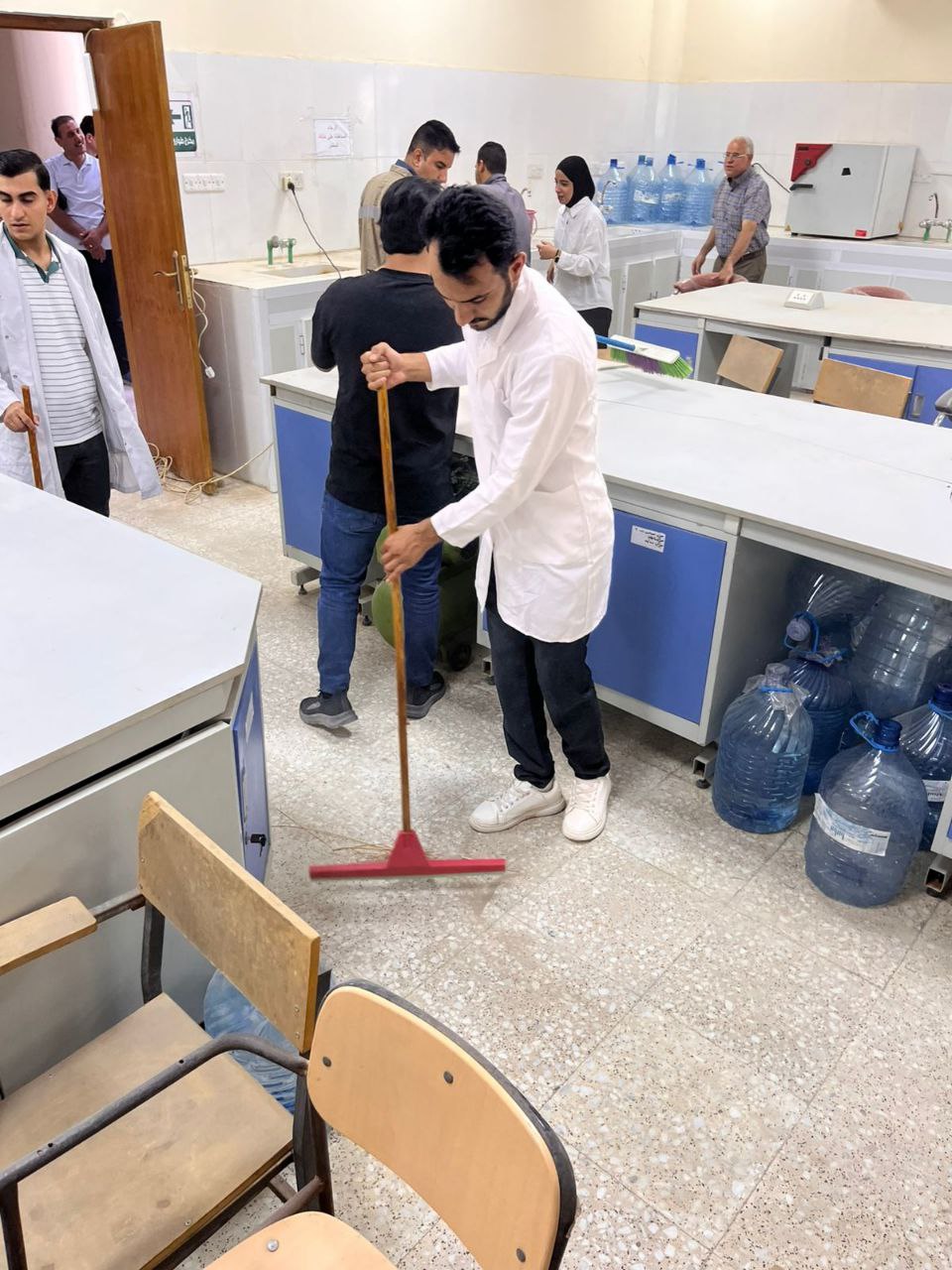 ضمن الأنشطة التطوعية الهادفة إلى تعزيز روح العمل الجماعي والانتماء للبيئة الجامعية، نظّم أساتذة وطلبة قسم المكائن والآلات الزراعية في كلية الزراعة بجامعة البصرة ، حملة تطوعية شاملة شملت تنظيف وصيانة المختبرات والقاعات الدراسية التابعة للقسم.