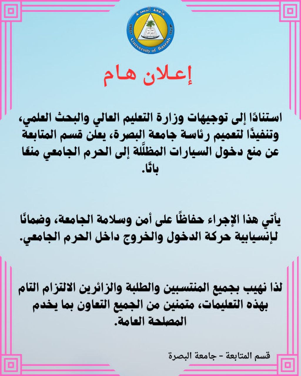 اعلان هام الى المتقدمين للدراسات العليا 2023 - 2024 / كلية الزراعة - جامعة البصرة