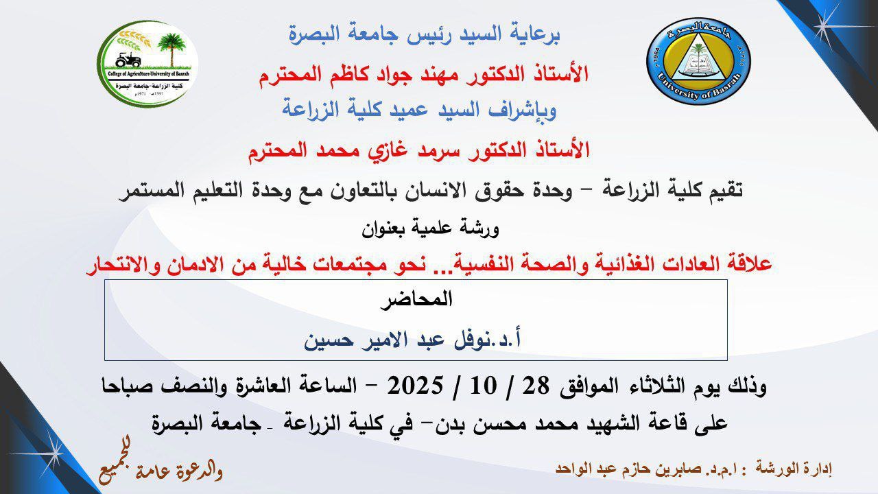 جامعة البصرة تنظم حلقة نقاشية عن تأثير التجويع وإعادة التغذية على الجوانب الفسيولوجية والتغذوية لأسماك الكارب