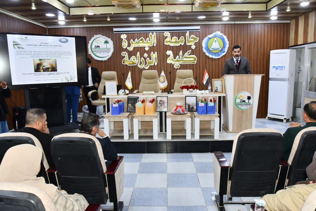 برعاية وحضورالسيد عميد كلية الزراعة الأستاذ الدكتور سرمد غازي محمد الشاوي المحترم وبحضور السيد المعاون العلمي الاستاذ الدكتور صادق جبار محسن المحترم ، وتحت شعار "عليٌّ نبراس العلم والعطاء"، أقامت كلية الزراعة اليوم احتفالاً مهيباً ومهرجانًا ثقافيًا بمناسبة ذكرى ولادة وليد الكعبة، وصي رسول الله، الإمام علي بن أبي طالب (عليه السلام).