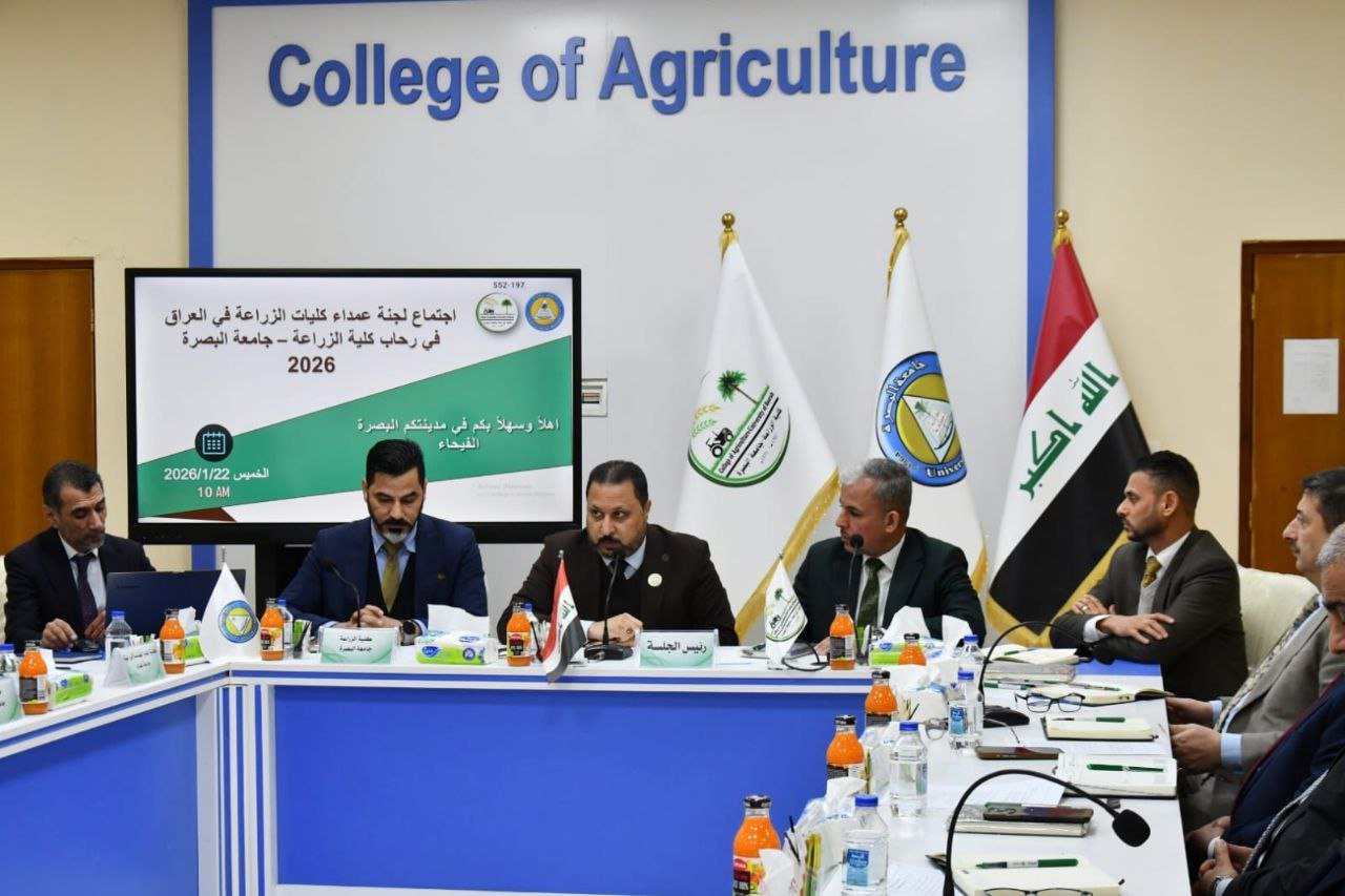 استضافت كلية الزراعة في جامعة البصرة، اليوم، الاجتماع الدوري للجنة عمداء كليات الزراعة في العراق، بحضور عمداء الكليات من مختلف الجامعات العراقية، حيث افتتح الاجتماع السيد رئيس جامعة البصرة الاستاذ الدكتور مهند جواد كاظم الاسدي ، بكلمة رحّب فيها بالسادة العمداء مثمنًا تلبيتهم الدعوة ومشاركتهم الفاعلة، ومؤكدًا الدور المحوري لكليات الزراعة في تخريج أجيال من الزراعيين والخبراء في مجالات الزراعة وعلوم الأغذية ودعم مسارات الأمن الغذائي والتنمية المستدامة.