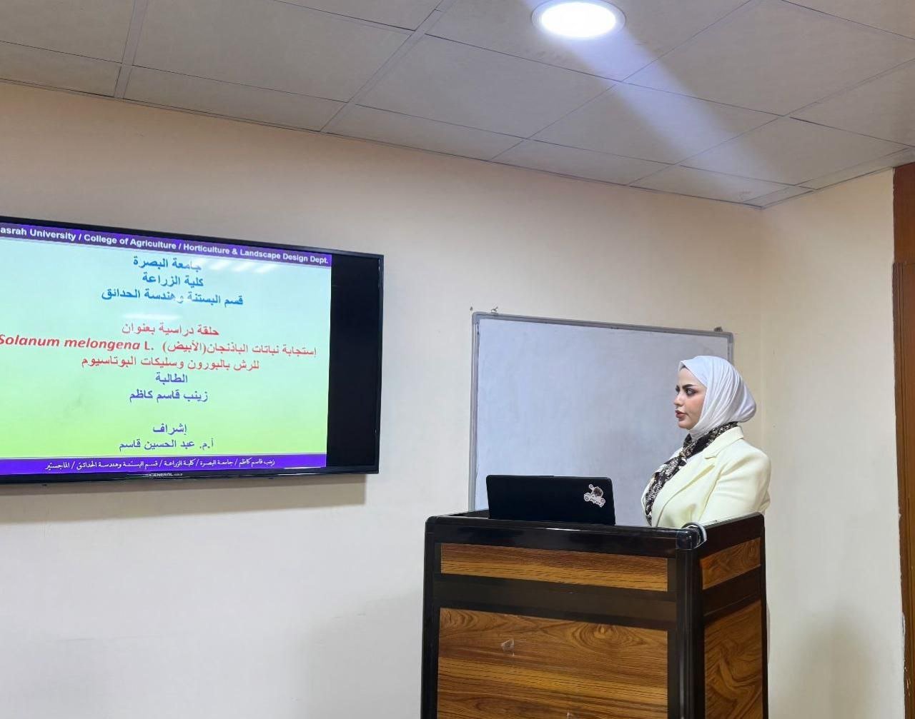 نظمت كلية الزراعة في جامعة البصرة حلقة نقاشية عن تاثير الرش بالبورون وسليكات البوتاسيوم على نبات الباذنجان الأبيض .