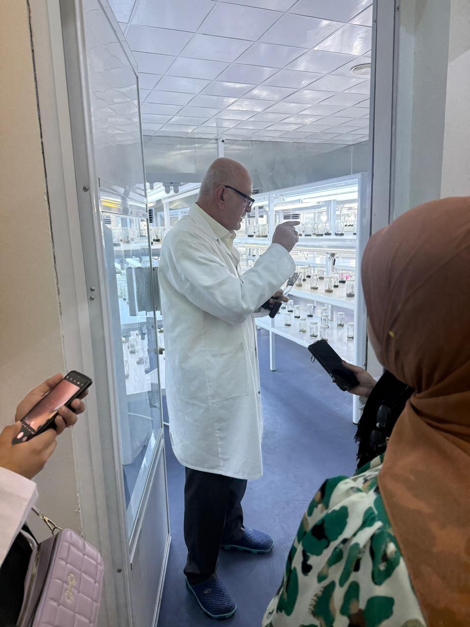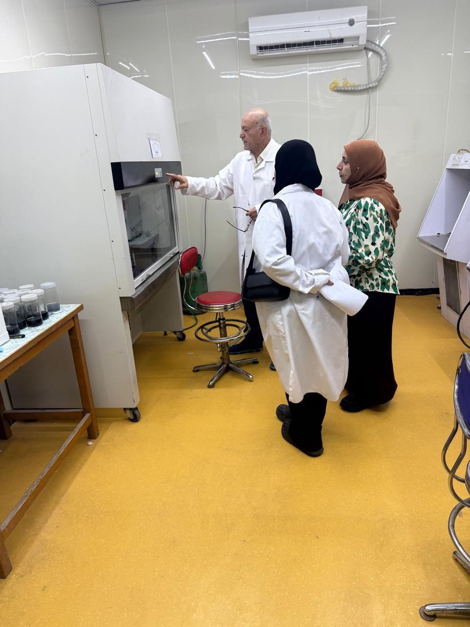 كما شملت الزيارة جولة ميدانية في غرف الزراعة والتحضين والتنمية، حيث تم التعرف على الأوساط الغذائية المستعملة في مراحل الزراعة المختلفة، فضلاً عن الظروف البيئية المناسبة لتطور النمو وصولاً إلى المراحل المتقدمة قبل نقل النباتات إلى المظلات المحمية لتهيئتها للظروف الخارجية.