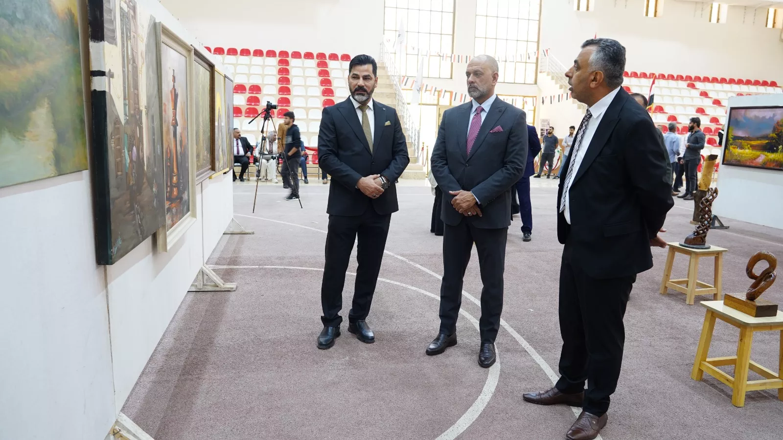 افتُتح المعرض الفني بحضور الممثلين عن جهاز الإشراف والتقويم العلمي الأستاذ أحمد عبدالجبار حسين والأستاذ زيد علي حسين، وبمشاركة السيد عميد كلية الزراعة في جامعة البصرة الاستاذ الدكتور سرمد غازي محمد ممثلًا عن السيد رئيس جامعة البصرة.