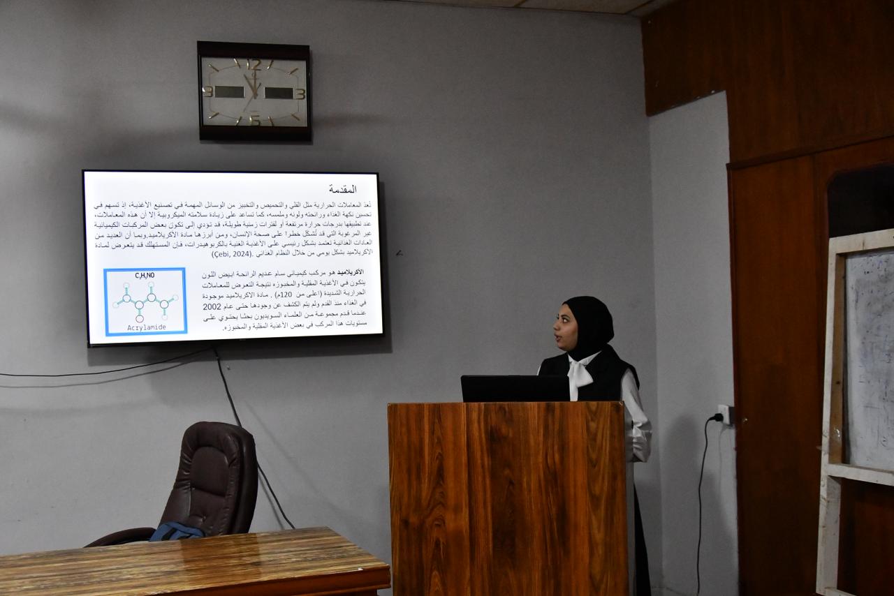 ضمن متطلبات نيل شهادة البكالوريوس وفي إطار تعزيز المهارات البحثية والخطابية للطلبة، شرع قسم علوم الأغذية في كلية الزراعة بجامعة البصرة بتنظيم جلسات إلقاء الحلقات الدراسية لطلبة المرحلة الرابعة للعام الدراسي الحالي 2025-2026 .