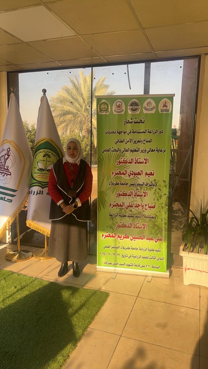 شاركت التدريسية في كلية الزراعة بجامعة البصرة الدكتورة وسن فوزي فاضل في المؤتمر الدولي الثالث للعلوم الزراعية بجامعة كربلاء .