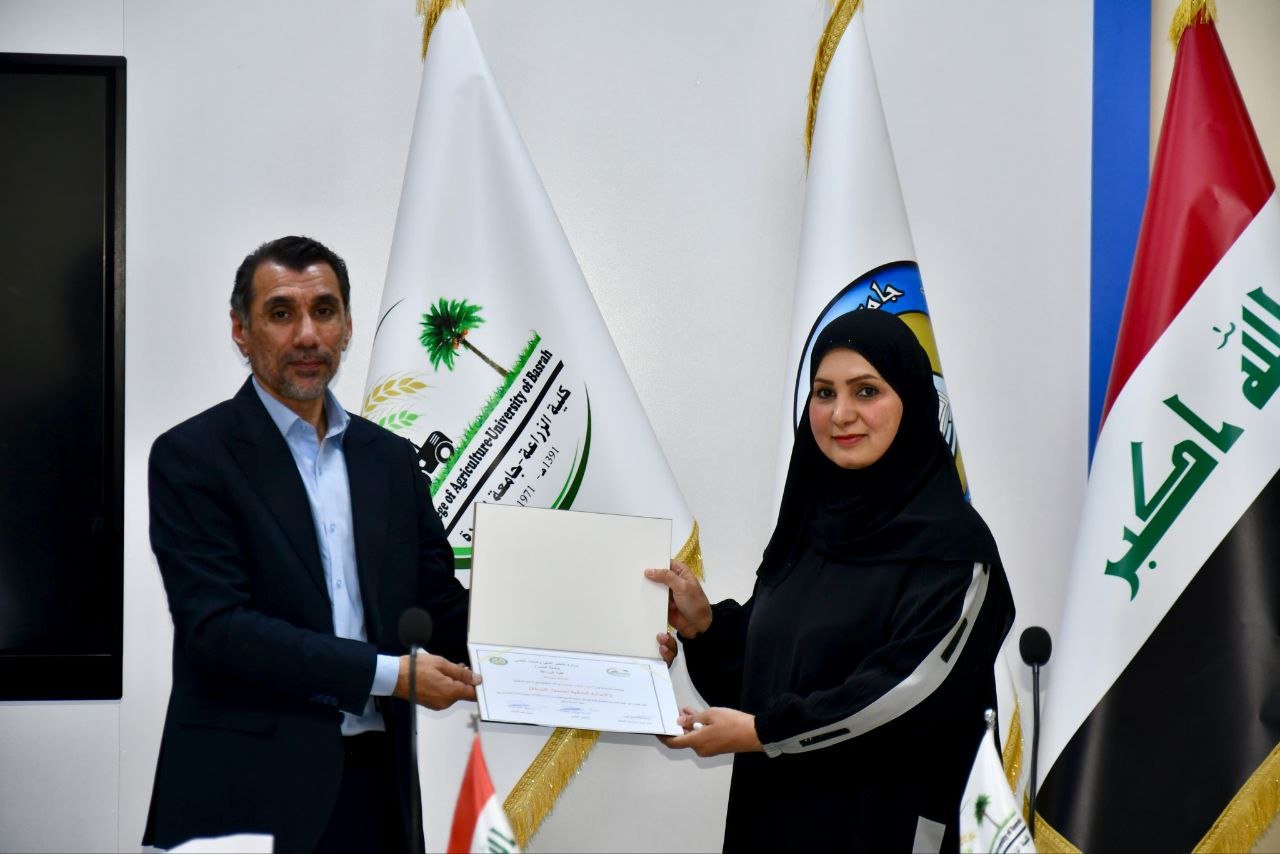 وفي ختام الدورة، جرت مراسيم توزيع شهادات المشاركة على المتدربين بحضور السيد المعاون العلمي الأستاذ الدكتور صادق جبار محسن ، الذي أثنى بدوره على الالتزام العالي للمشاركين، مؤكداً على دور الجامعة في رفد مؤسسات الدولة بالخبرات الأكاديمية والميدانية لتعقيق التنمية الزراعية الشاملة.