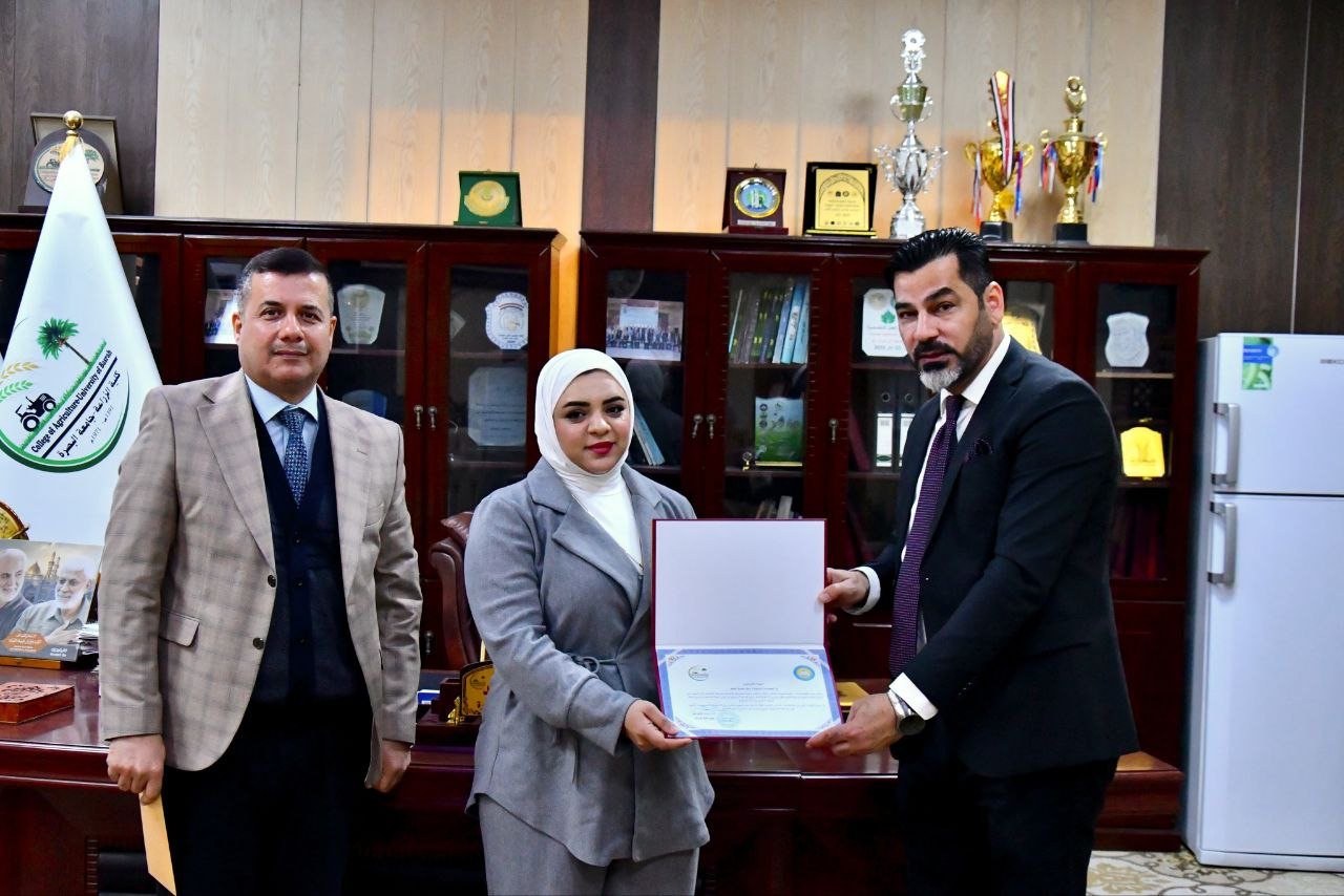 ضمن سعيها المتواصل لتعزيز الاستدامة البيئية، كرمت عمادة كلية الزراعة في جامعة البصرة المتمثلة بالاستاذ الدكتور سرمد غازي محمد الشاوي ، المهندسة حنان صادق جعفر ، تثمينًا لجهودها الاستثنائية ودورها البارز في دعم وإنجاح حملة التشجير الكبرى التي شهدتها أروقة الكلية بتاريخ 12/ 1/ 2026 والتي كان لها اثرايجابي في تعزيز البيئة الجامعية وترسيخ ثقافة العمل التطوعي وخدمة المجتمع .