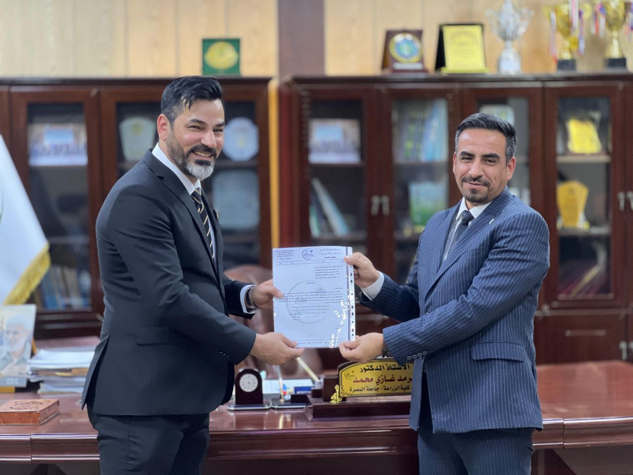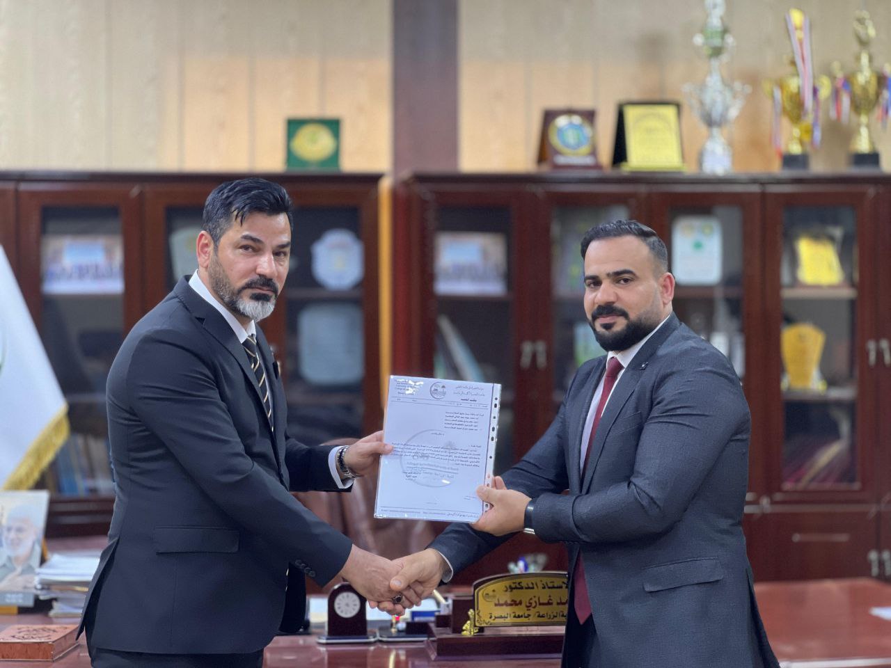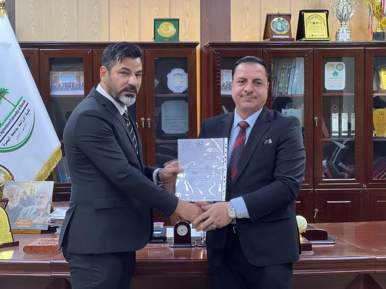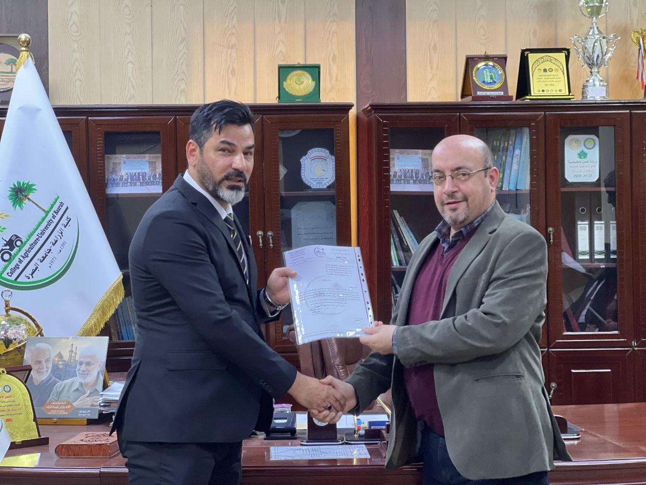 على هامش الزيارة الميدانية لفريقي التقييم الوزاريين المكلفين بتقييم برنامجي البكالوريوس في قسم علوم التربة والموارد المائية وقسم المكائن والآلات الزراعية، كرّمت عمادة كلية الزراعة في جامعة البصرة اللجان الوزارية بمنحهم كتب شكر وتقدير، تثمينًا لجهودهم العلمية والمهنية المبذولة في إطار إجراءات الاعتماد البرامجي.