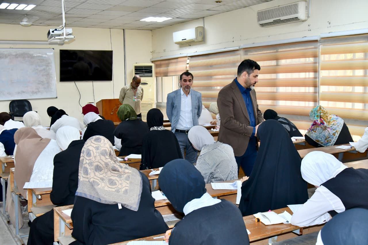 وأثنى السيد العميد خلال جولته على الجهود المبذولة من قبل الأقسام العلمية واللجان الامتحانية في تهيئة الأجواء المناسبة، مؤكداً على ضرورة التزام الطلبة بالوقت المحدد والتعليمات الامتحانية لضمان أداء متميز، وتذليل كافة المعوقات التي قد تواجه الطلبة أثناء تأدية الاختبارات.