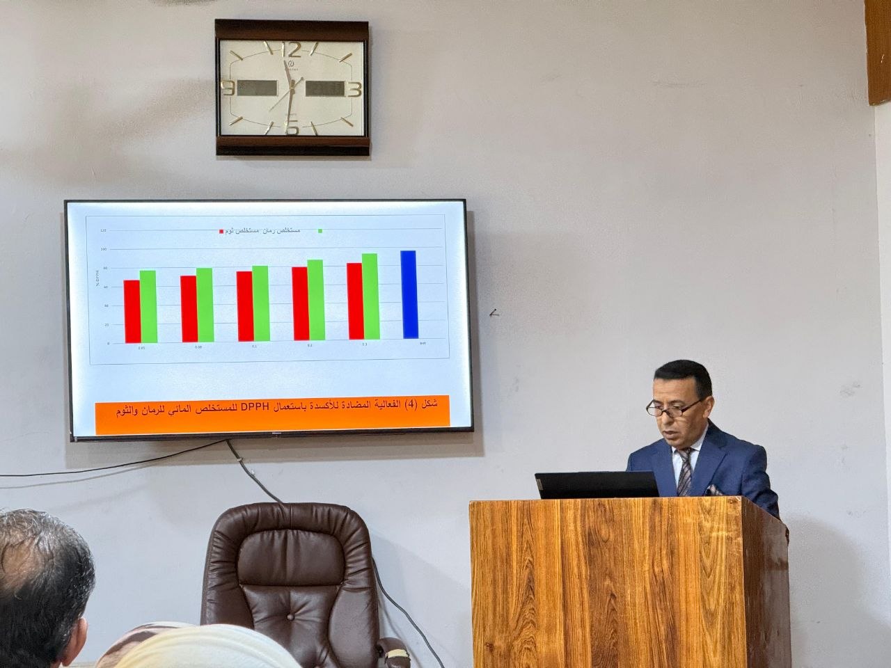وهدفت الحلقة التي القاها الباحث علي عبد الحسين عبد الله ، الى تحضير مركز بروتيني من حبوب الذرة البيضاء الرفيعة وتحويره بتراكيز مختلفة من المركبات الفينولية المستخلصة من بعض المخلفات النباتية(الرمان والثوم والبصل والبرتقال والخس ) ودراسة تأثير التحوير في الخصائص الوظيفية والمؤشرات الكيميائية والبنيه التركيبية للمركز البروتيني واستعماله في تحسين الخصائص النوعية لأقراص اللحم البقري المخزنة بالتبريد .