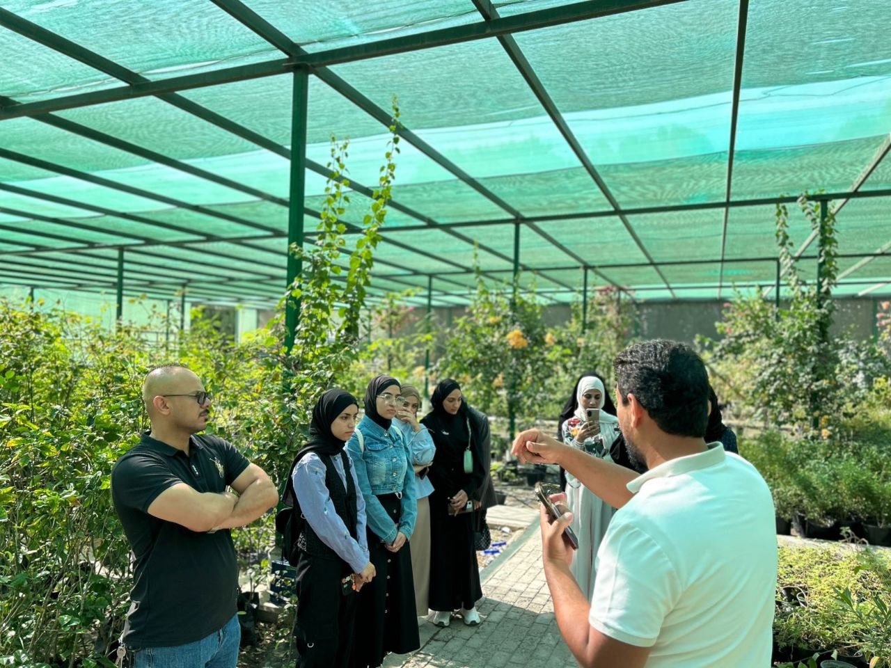 كما شملت الزيارة جولة في المشتل الخاص بالنباتات الظلية ونباتات الزينة، حيث تم التعرف على طرق إكثارها والعناية بها، مما أسهم في ربط الجانب النظري بالتطبيقي وتوسيع مدارك الطلبة في المجالات الزراعية الحديثة.